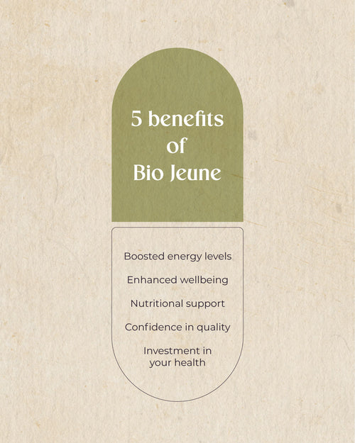 Bio Jeune was born from both science and soul. a wellness brand built on integrity, intention, and innovation. Our mission is to offer thoughtfully formulated supplements that are functional and efficient to support real people in real-life scenarios from mental clarity and energy, to skin health, hormonal balance, Gut health, Relaxation and beyond.